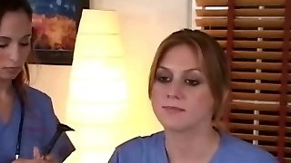 Naughty lesbians wearing fabulous nurse uniform gives pussy massage to mischievous girlfriend