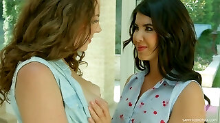 Ashlyn Rae and Sara Stone have lesbian intercourse in antique lingerie