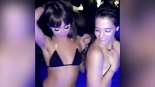latina brunettes dance and touch each other's pussies by the pool GGmansion