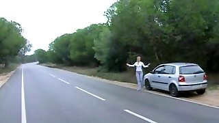 Three naughty stunners strip and fuck in a parking lot