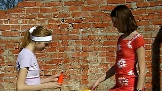Leggy lesbian teen with small tits enjoying a fabulous vibrator screw
