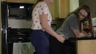 Frisky lesbos fill up their hefty asses with milk and squirt i