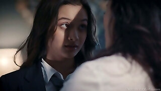 Hot like fire sexy office lesbian Alex De La Flor entices glamorous babe for sex